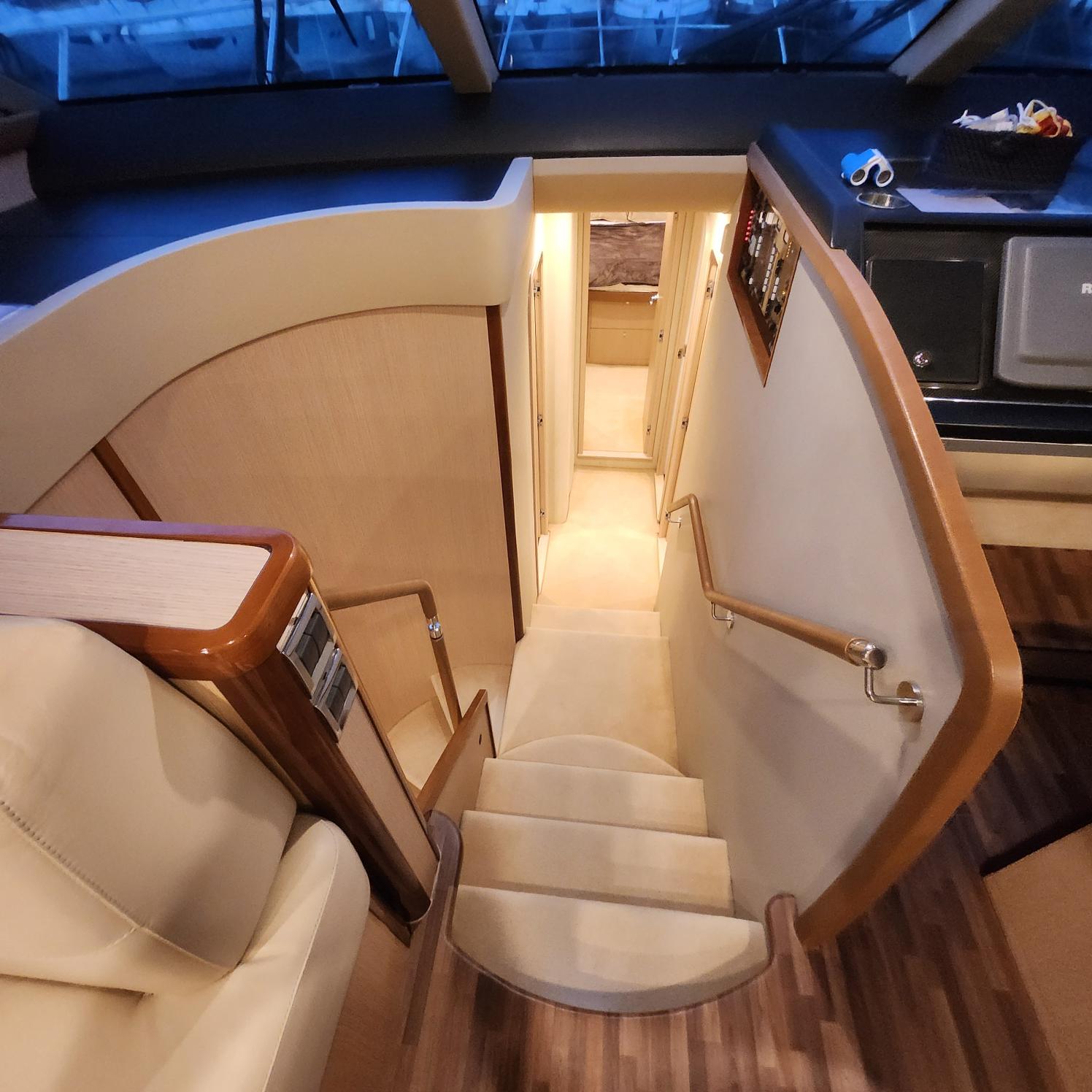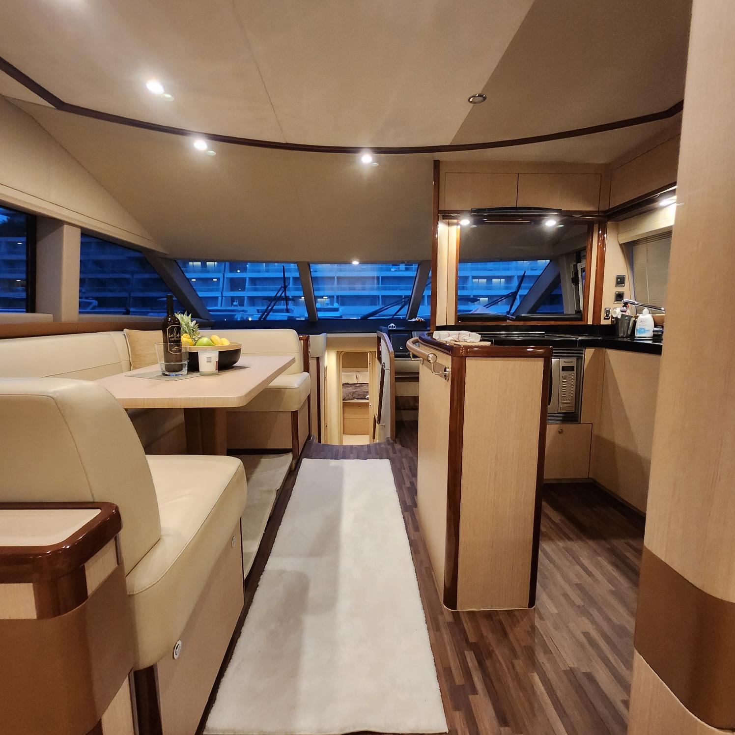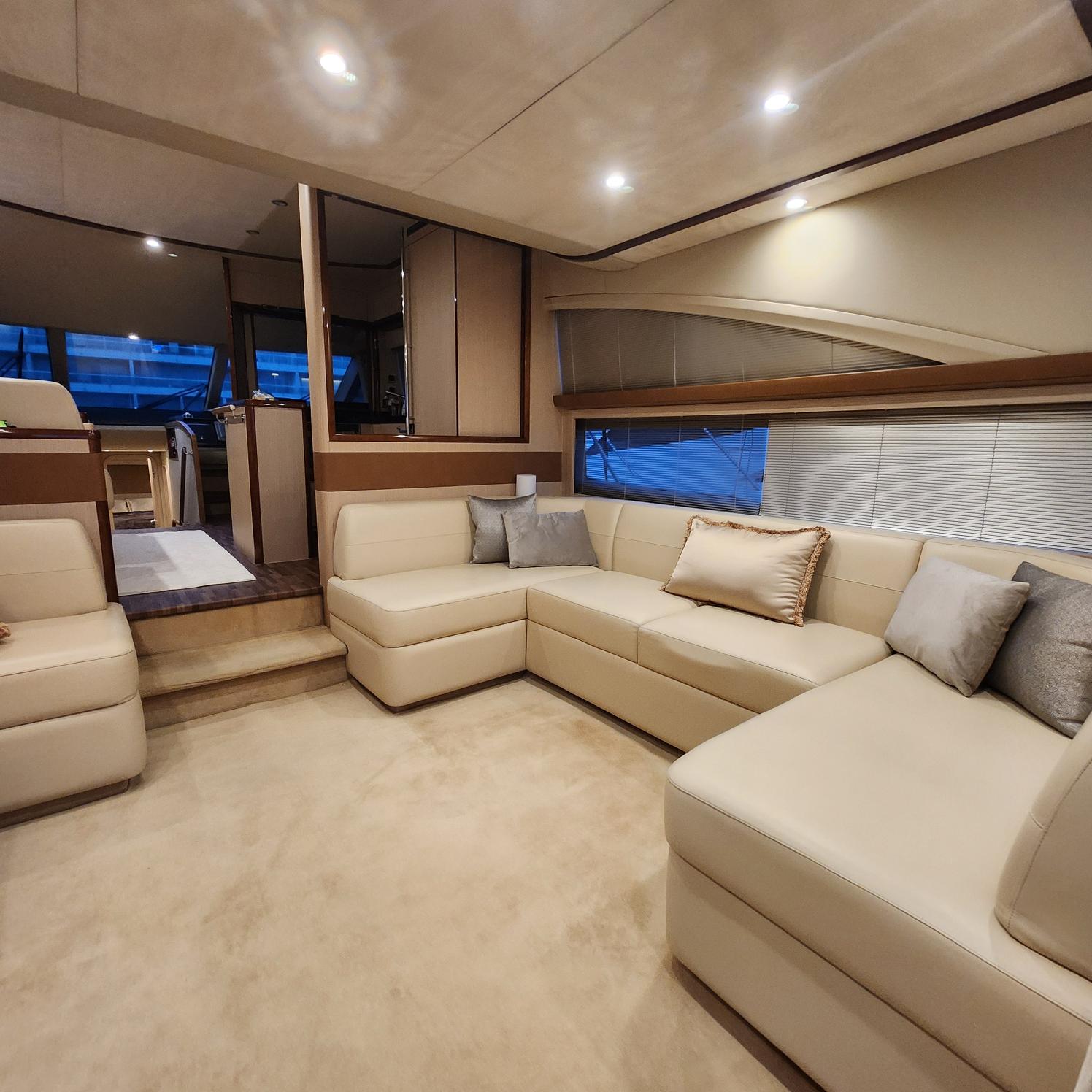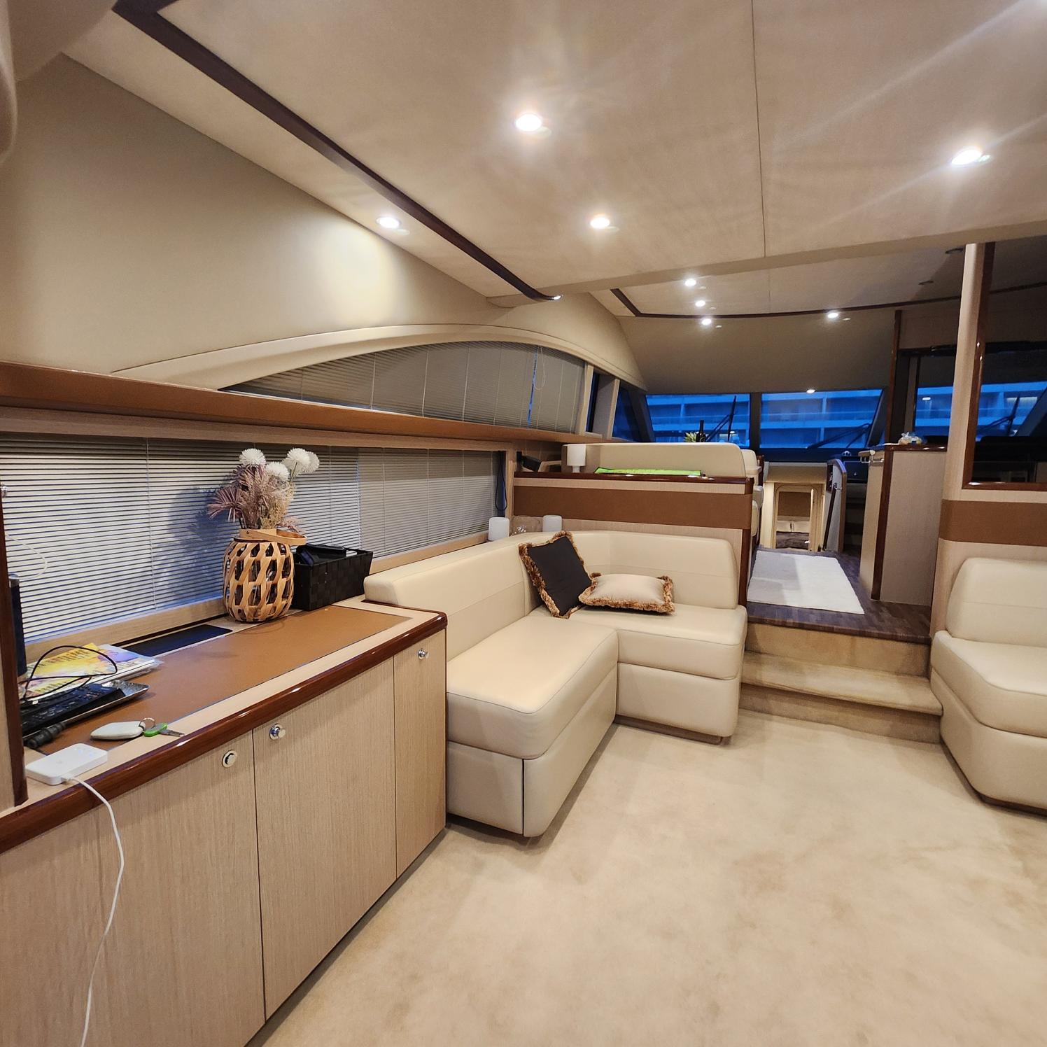 Princess 62 „Sassy“ was first launched in 2009 as a luxury stylish model of Princess Shipyard. Since then, this maritime gem has been an epitome of opulence and nautical skills. With a recent refit, Sassy not only maintains her regal allure but also embraces modernity in style and functionality. Moreover, Sassy’s allure is immediately evident as you step into her contemporary and neutral-toned interior. The spacious salon, with panoramic windows, invites abundant natural light, creating an open and airy ambiance. In addition, the aft lounge area boasts two generous sofas, a coffee table, and a state-of-the-art drop-down entertainment system. Forward, a spacious dining table, offers not only a meal but a feast for the eyes through the surrounding windows.