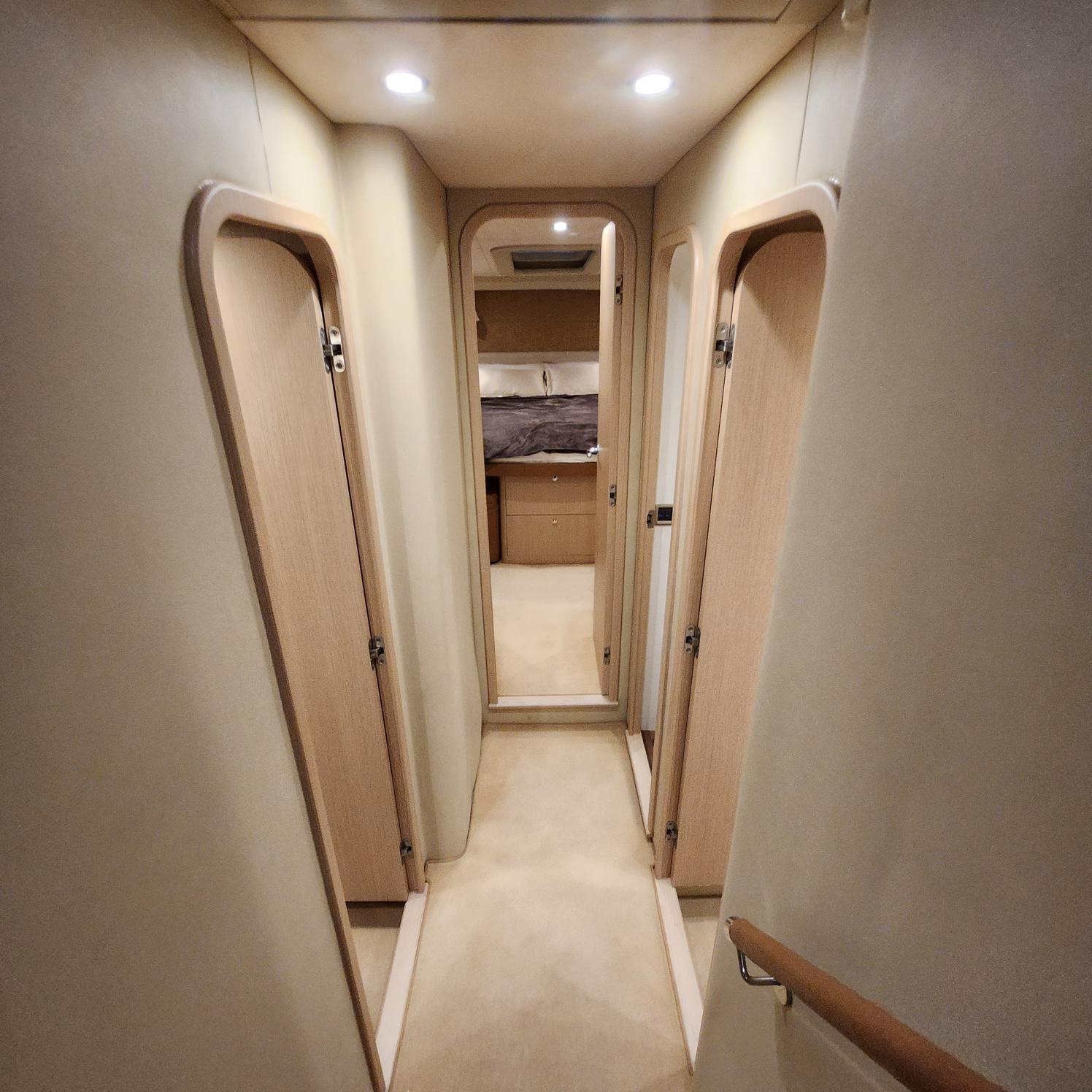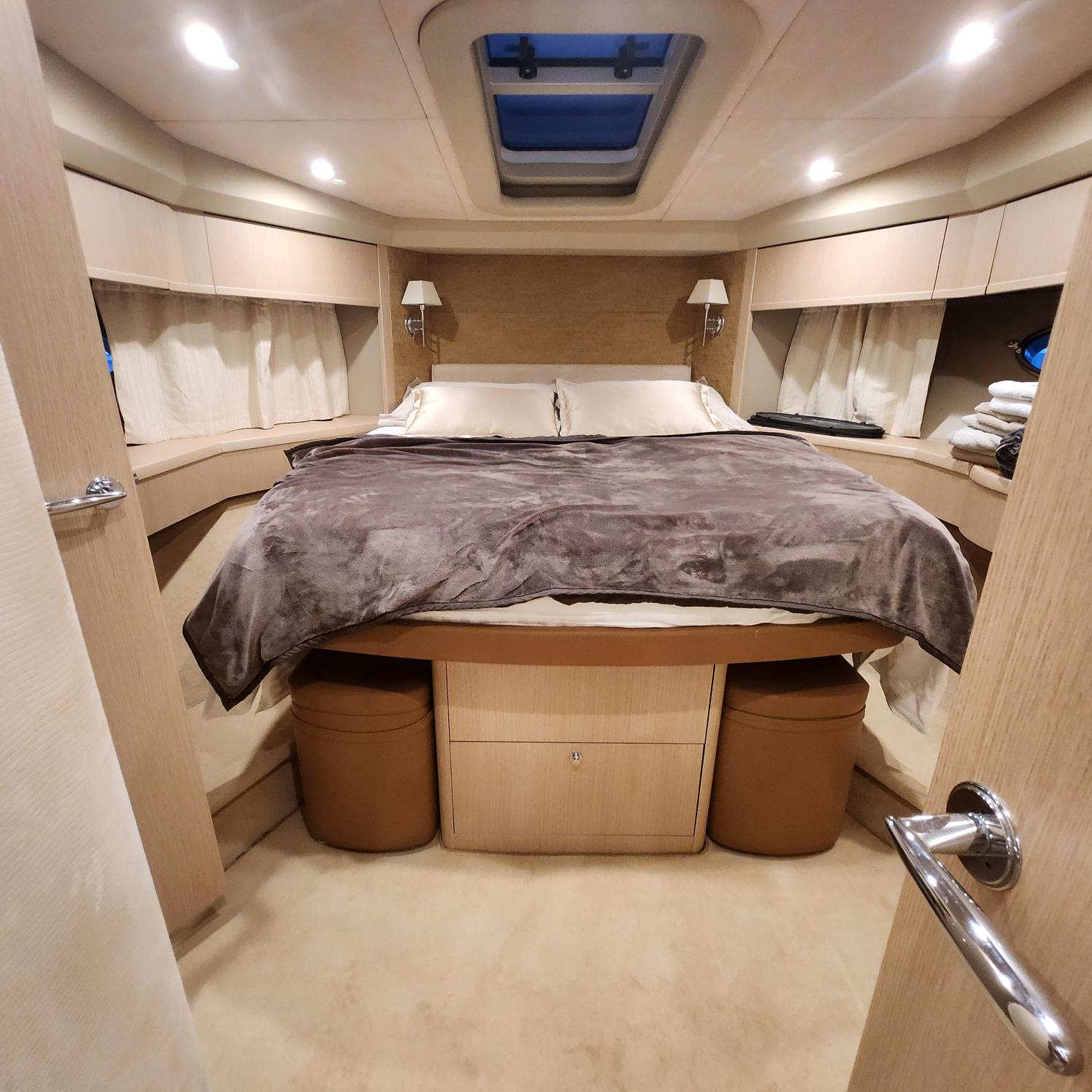 Designed for those who appreciate the beauty of the Adriatic, Sassy provides ample outdoor spaces to soak in the mesmerizing views. The aft deck, adjacent to the salon, offers partial shade and an alfresco dining option, creating a perfect spot for entertaining. The side decks elegantly wrap around the yacht, leading to a comfortable fore deck. The fly bridge features additional alfresco dining, seating, a removable Bimini for shade, and a sunning area. This makes it an ideal setting to revel in the sun-drenched beauty of the Adriatic.